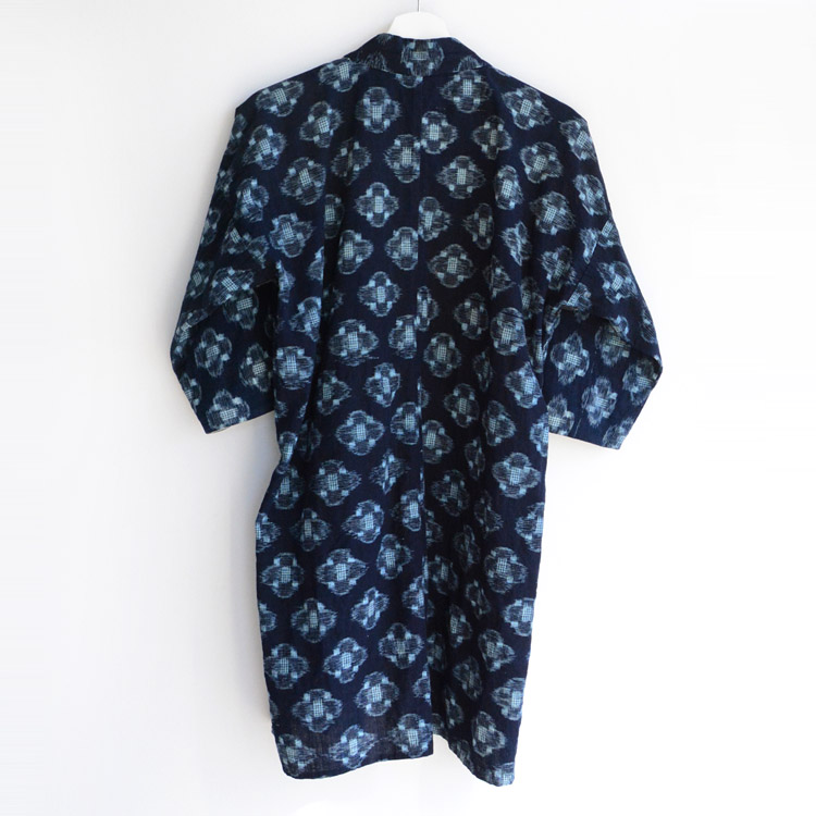 Noragi's standard design and indigo kasuri fabric unique to old Japanese cotton kimono are impressive.