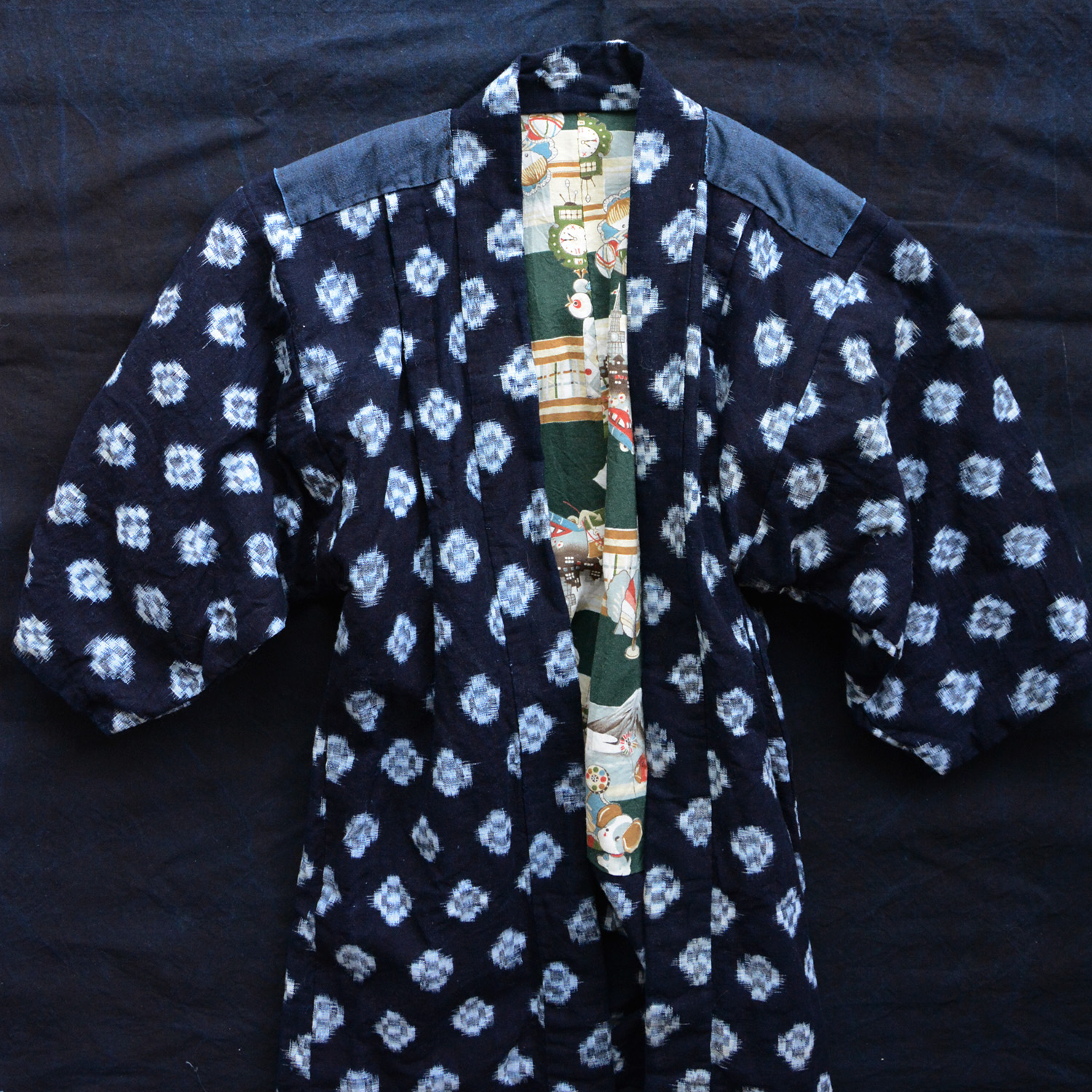 戦争柄 着物 絣 藍染 木綿 子供用 ジャパンヴィンテージ 昭和 プロパガンダ | Kimono Kids